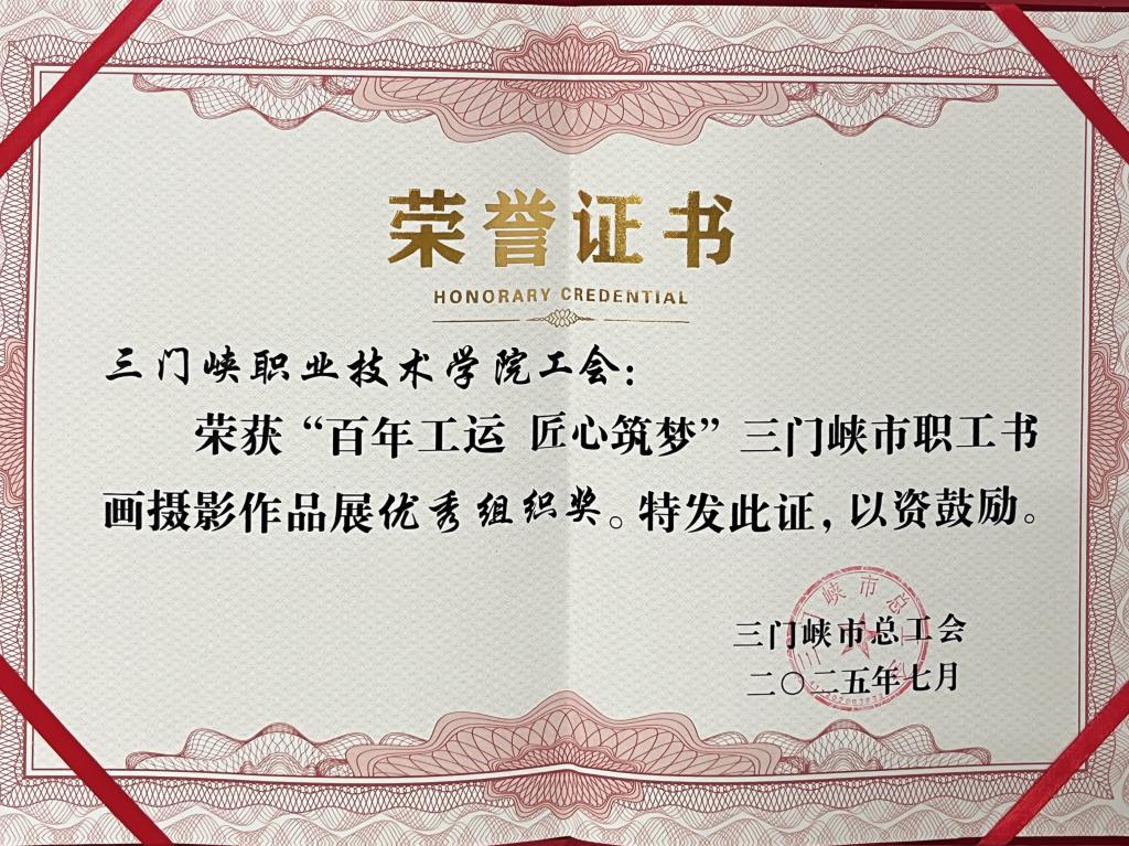 我院工会凭借出色的组织协调工作与广泛的群众参与度,荣获“百年工运 匠心筑梦”三门峡市职工书画摄影展优秀组织奖。这一殊荣既是对学院工会工作的充分肯定,也彰显了学院在推动教职工文化建设方面的卓越成效。